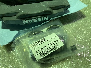 キャリパーオーバーホールをするべく前のページまで分解や整備、ついで作業などをしておりましたが・・・やっと本題です(笑) 必要となるのが純正キャリパーのオーバーホールキットです。 HCR32純正フロントキャリパー用の場合、パーツナンバーは「AY600-NS069」です。 (※作業日 2023年11月4日) |