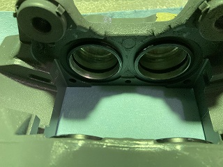 次、リア行きます♪ ブレーキチューブの向きに注意しつつ手締めで仮組しておきます。 ※ちなみに画像は左リアキャリパーです |