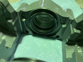 ピストン側の摺動部にもグリスを薄く塗布しておきます。 |
