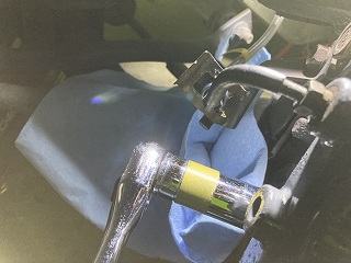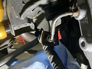 バラした際にホースからフルードが垂れるのを防止するためにブラケットをタイラップ固定しておりましたが切っておきます。 |