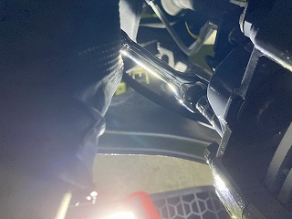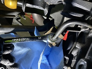 キャリパー側とホース側の2か所を10mmのフレアナットレンチで本締めします。 |
