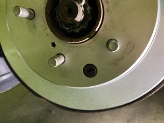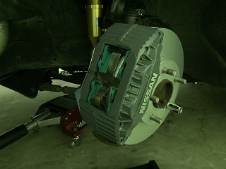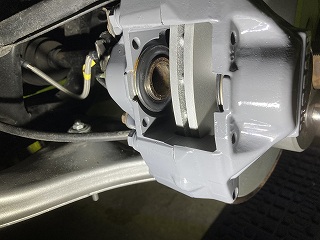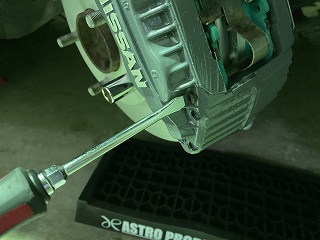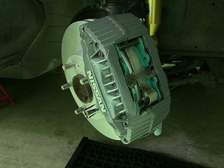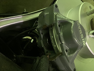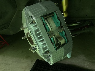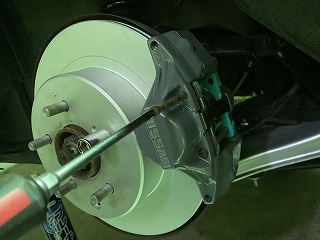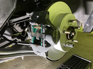 で、パッドを装着し、スプリングを取り付け、プラスドライバーでスライドピンの穴を合わせて完成。 |